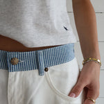 • Kleur: Offwhite met blauw-witte gestreepte tailleband