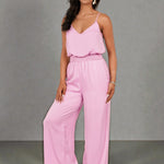 Deze roze jumpsuit is gemaakt van een zachte, soepelvallende stof die heerlijk comfortabel draagt. De dunne schouderbandjes en V-hals geven een elegante, vrouwelijke look. Dankzij de elastische taille sluit de jumpsuit mooi aan en creëert hij een flatterend silhouet. De wijde pijpen zorgen voor een stijlvolle, luchtige uitstraling. Perfect voor zomerse dagen, een feestje of een relaxte avond uit.
