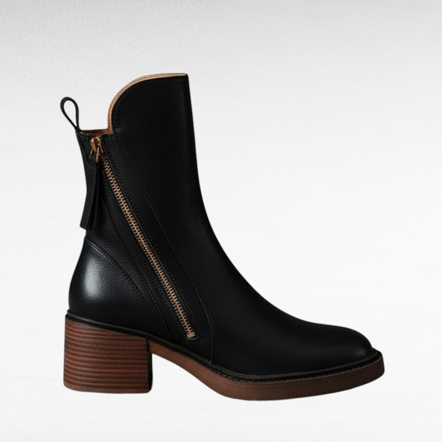 Zwarte Leren Enkelboot met Hak & Ritsdetail