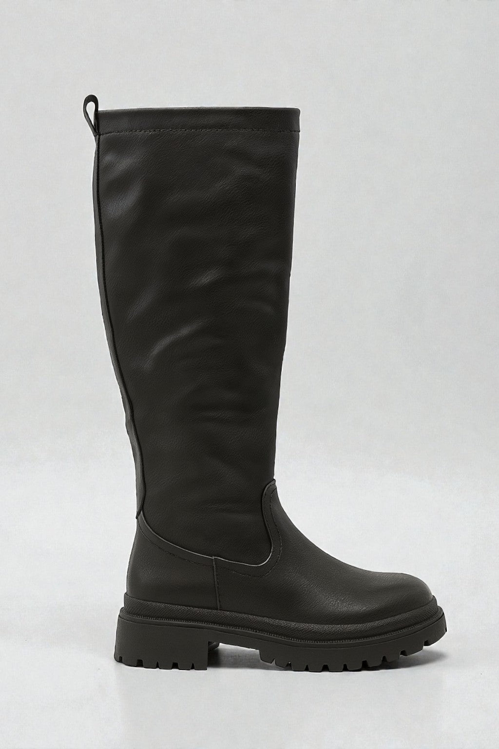 Zwarte Dames Hoge Laarzen met Profielzool – Tijdloos&Stoer