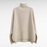 Gebreide Turtleneck Poncho Trui – Beige
