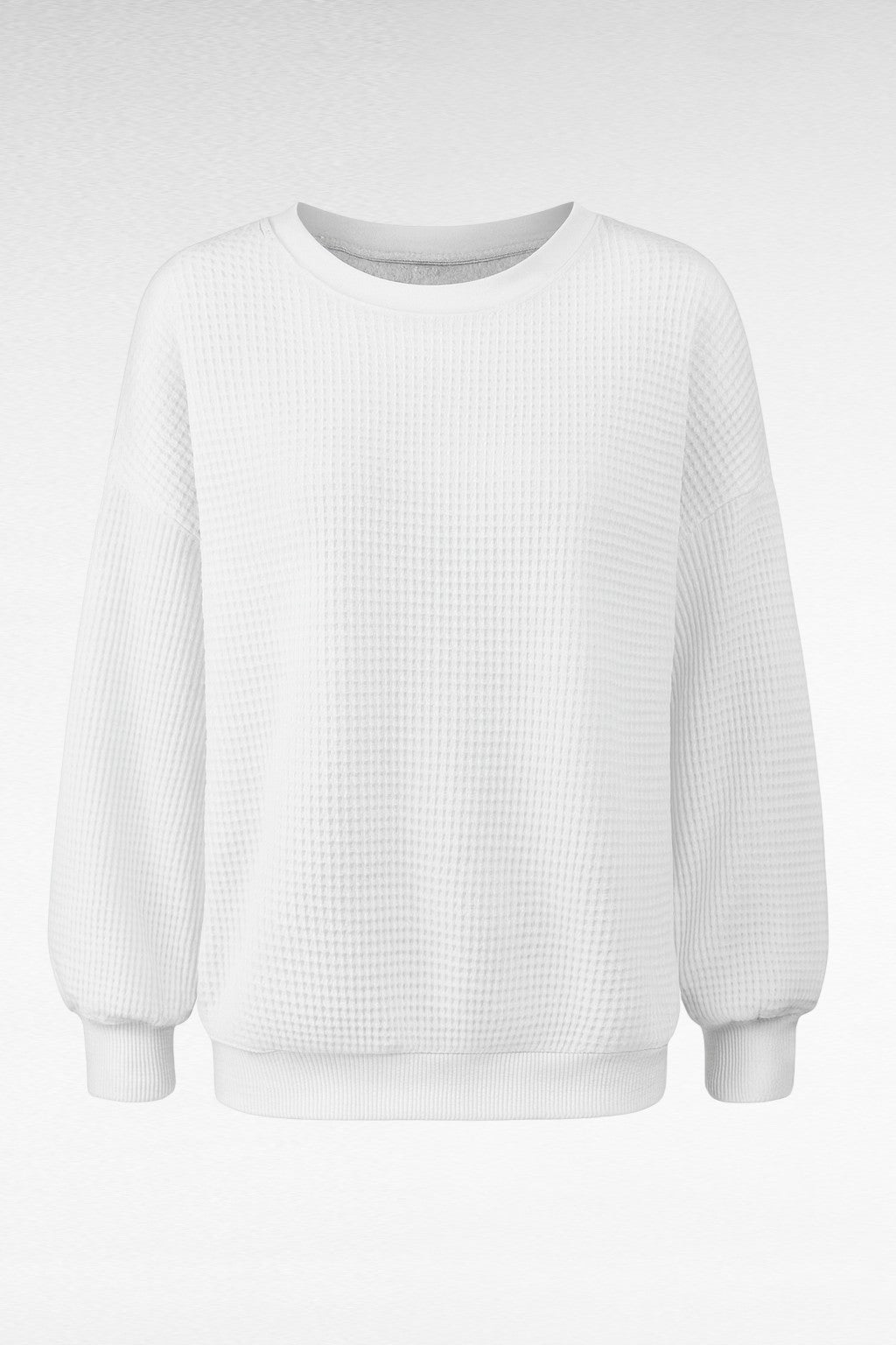 Witte Oversized Wafelstructuur Trui – Casual &Comfortabel