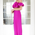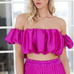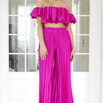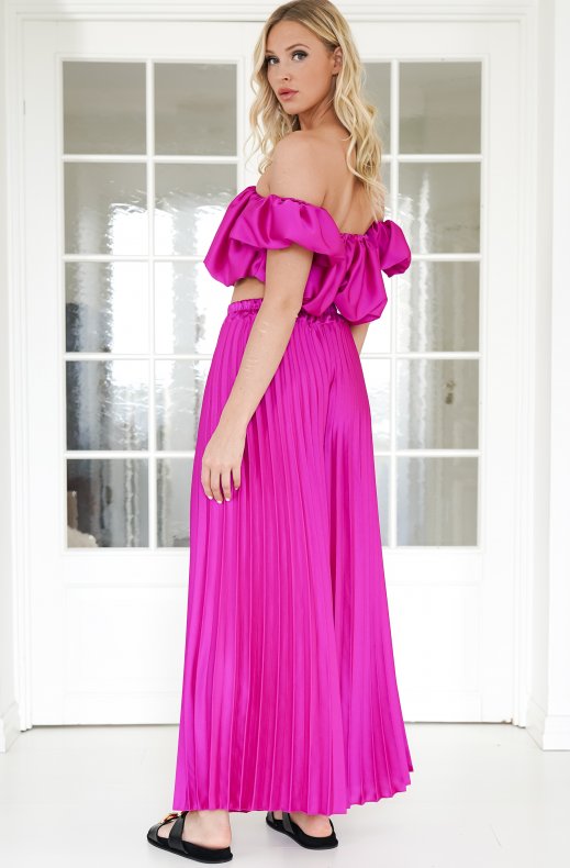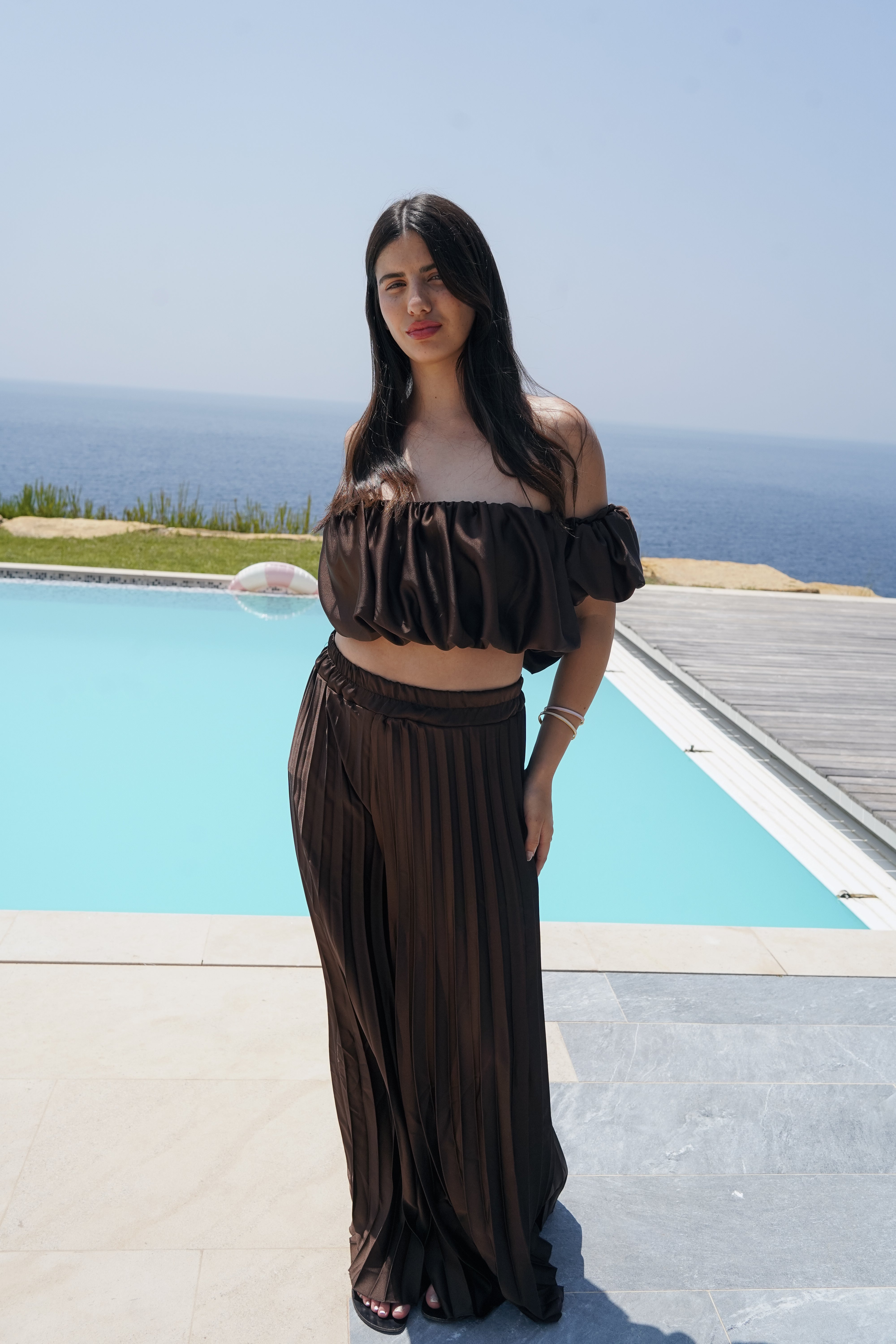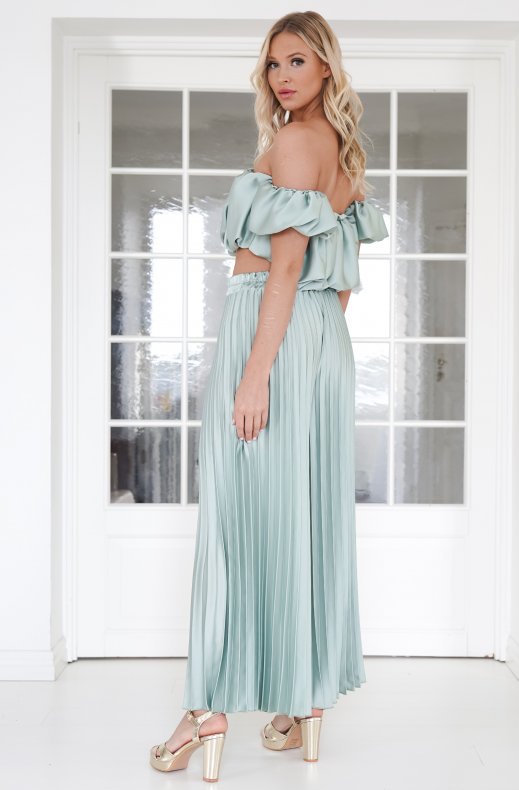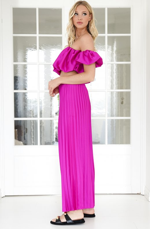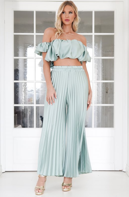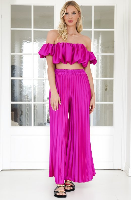 Chic, luchtig en onweerstaanbaar stijlvol – deze plissé set, beschikbaar in verschillende kleuren, is jouw ultieme go-to voor een elegante zomeravond of een fashionable city stroll. De glanzende satijnen finish, vrouwelijke pasvorm en verfijnde plooien zorgen voor een look die even comfortabel als verbluffend is.