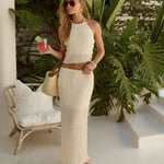 Zomerse elegantie met een speelse twist – de Zomer Set Evy laat je stralen bij elke gelegenheid. De luchtige halter crop top is gemaakt van een geplooide katoenmix en heeft een ontspannen fit die soepel valt. De ruches aan de zoom zorgen voor een charmante, vrouwelijke touch. Combineer met de bijpassende rok voor een moeiteloos chique set, ideaal voor zonnige dagen of een zwoele avond uit.